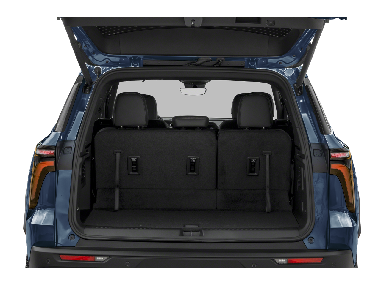 AWD, 1st and 2nd Row All-Weather Floor Mats, 3rd Row All-Weather Floor Liner, 3rd row seats: split-bench, 4-Way Manual Front Passenger Seat Adjuster, 4-Wheel Disc Brakes, 6 Speakers, 6-Speaker Audio System Feature, 8-Way Power Driver Seat Adjuster, ABS brakes, Air Conditioning, Alloy wheels, AM/FM radio: SiriusXM with 360L, Apple CarPlay/Android Auto, Auto High-beam Headlights, Automatic temperature control, Brake assist, Cargo Mat, Child-Seat-Sensing Airbag, Compass, Delay-off headlights, Driver Confidence Package, Driver door bin, Driver vanity mirror, Dual front impact airbags, Dual front side impact airbags, Electronic Stability Control, Emergency communication system: OnStar, Evotex Seat Trim, Four wheel independent suspension, Front anti-roll bar, Front Bucket Seats, Front Center Armrest, Front dual zone A/C, Front reading lights, Fully automatic headlights, HD Surround Vision, Heated door mirrors, Heated Driver and Front Passenger Seats, Heated front seats, Heated steering wheel, Illuminated entry, Interior Protection Package, Key Card, Low tire pressure warning, Navigation System, Occupant sensing airbag, Outside temperature display, Overhead airbag, Overhead console, Panic alarm, Passenger door bin, Passenger vanity mirror, Power door mirrors, Power driver seat, Power Dual Glass Panoramic Sliding Sunroof, Power Liftgate, Power Outlet, Power steering, Power windows, Radio data system, Radio: : Audio System w/17.7 Diagonal Display, Rear air conditioning, Rear anti-roll bar, Rear Camera Mirror, Rear Pedestrian Alert, Rear reading lights, Rear window defroster, Rear window wiper, Remote keyless entry, Security system, SiriusXM with 360L Trial Subscription, Speed control, Speed-sensing steering, Spoiler, Steering wheel mounted audio controls, Tachometer, Telescoping steering wheel, Tilt steering wheel, Traction control, Traffic Sign Recognition, Trip computer, Turn signal indicator mirrors, Variably intermittent wipers, Voltmeter, Wheels: : 18 High Gloss Black Painted Aluminum, AWD.