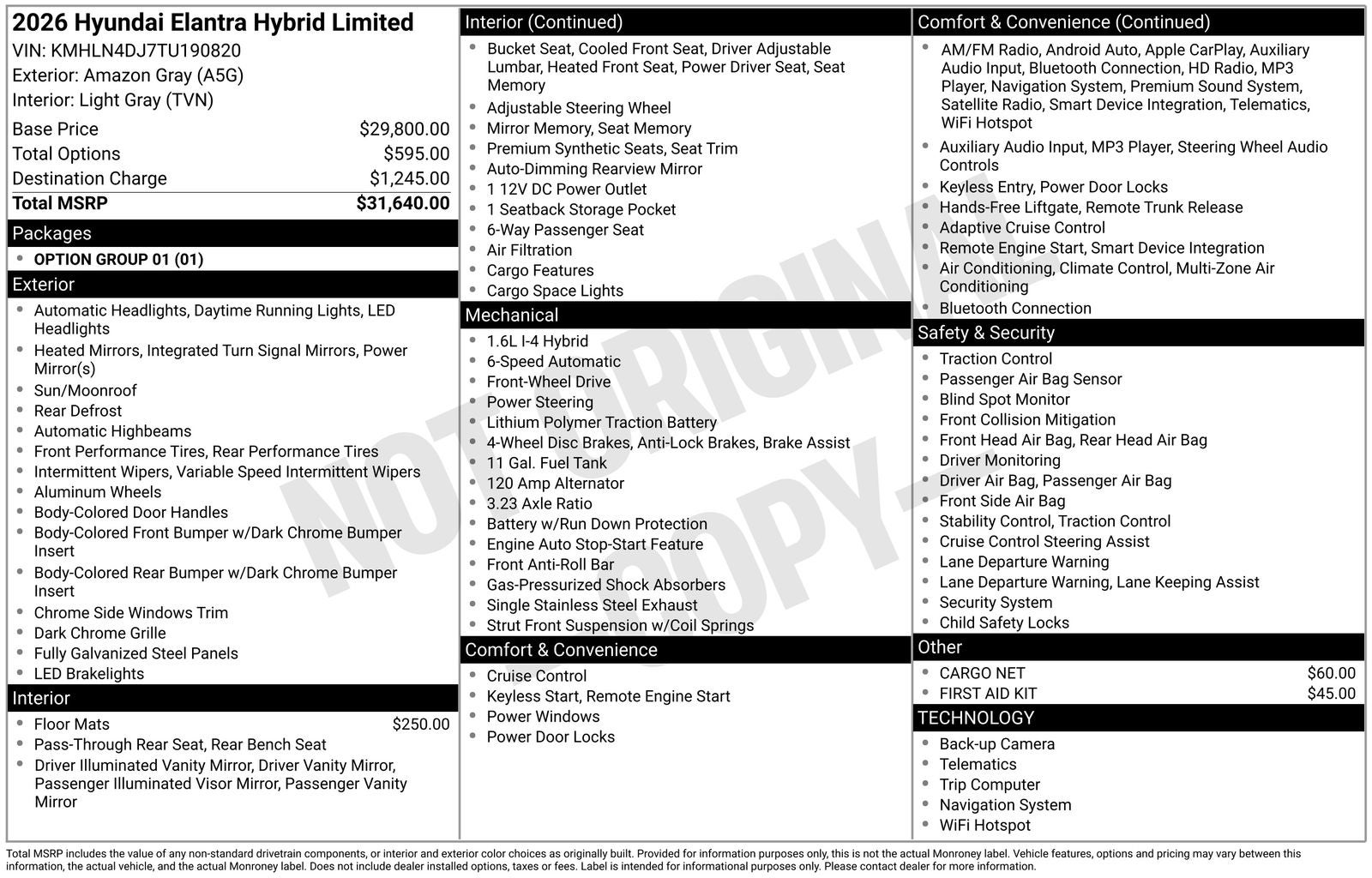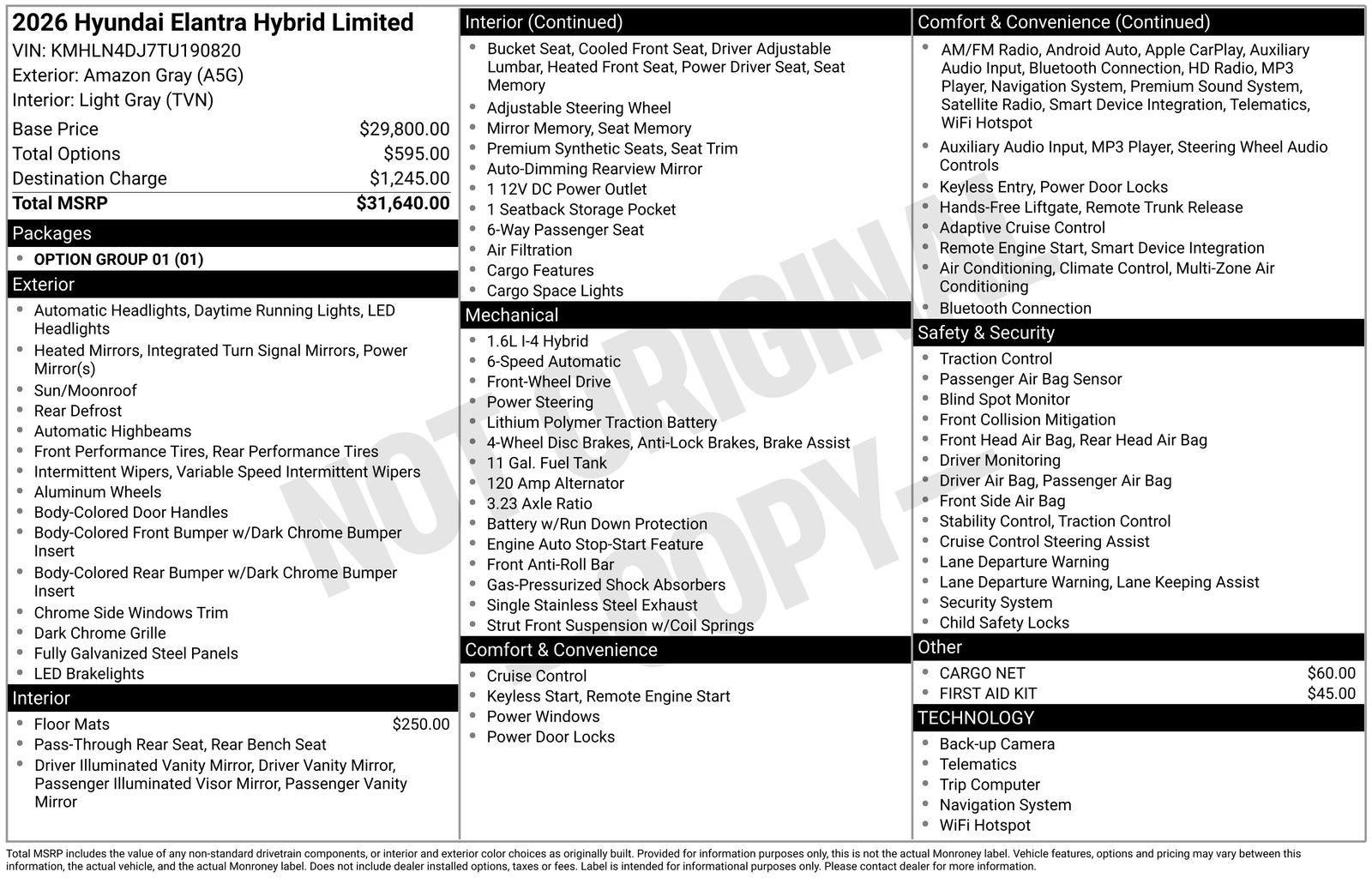 - Vehicle Name: Hyundai Elantra Hybrid