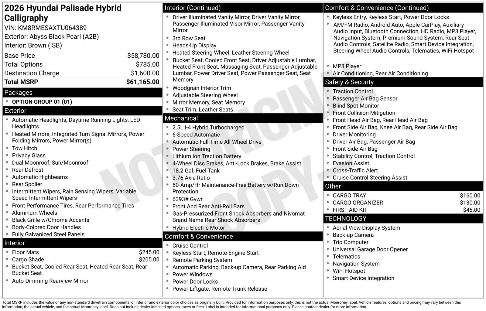 $1,748 off MSRP! 2026 Hyundai Palisade Hybrid Calligraphy Abyss Black Pearl AWD 2.5L Turbocharged GDI 4-Cylinder Hybrid 6-Speed Automatic