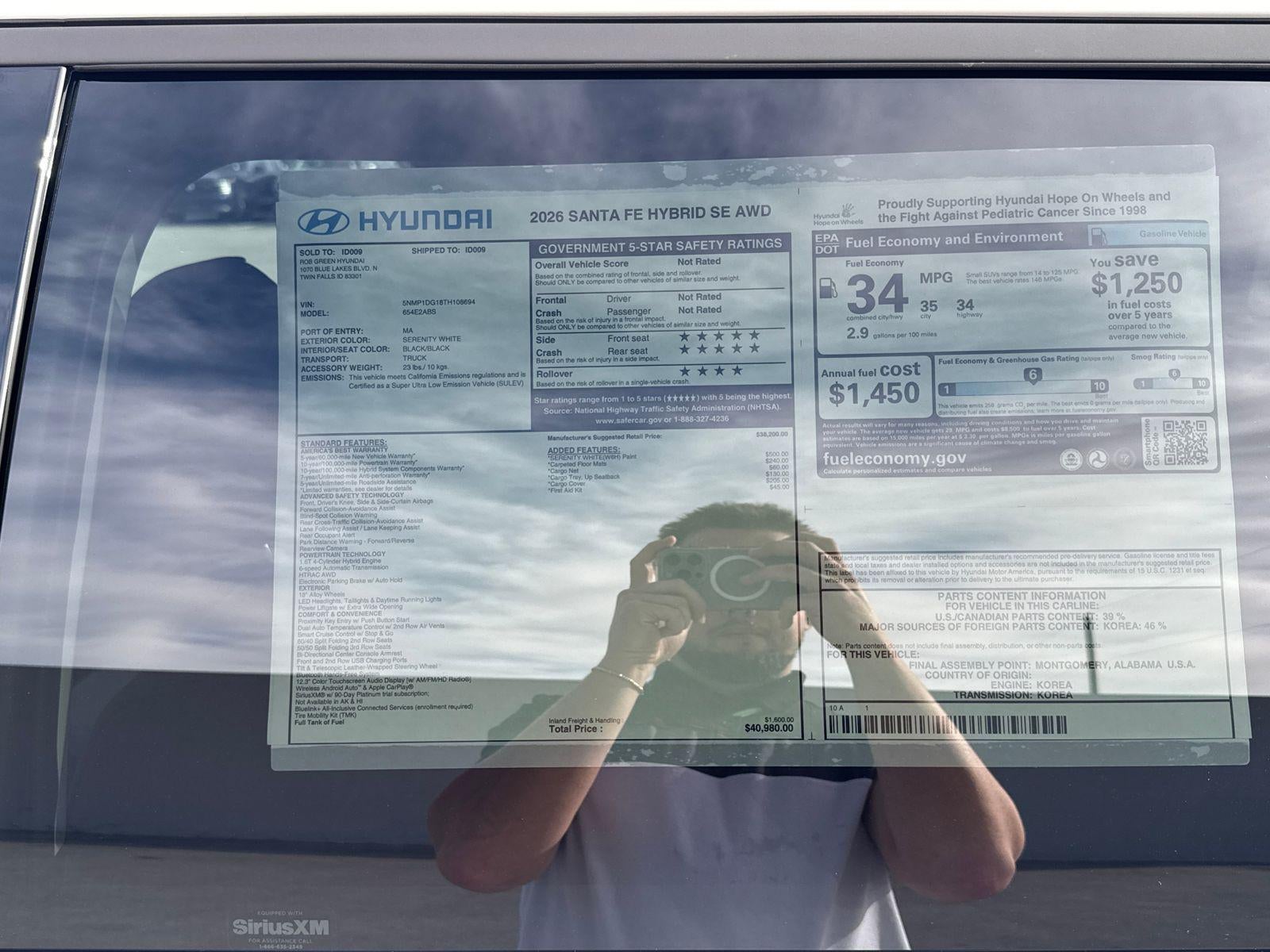 $5,252 off MSRP! 2026 Hyundai Santa Fe Hybrid SE Serenity White AWD I4 6-Speed Automatic with Shiftronic