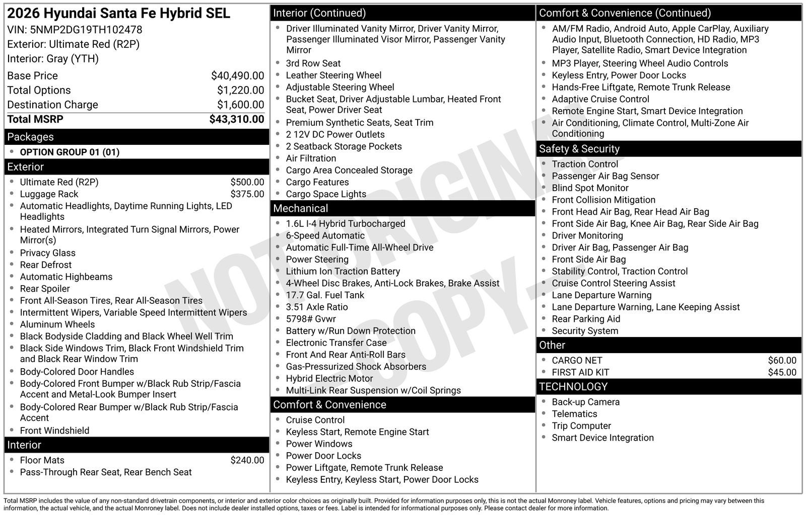 - Vehicle Name: Hyundai Santa Fe Hybrid