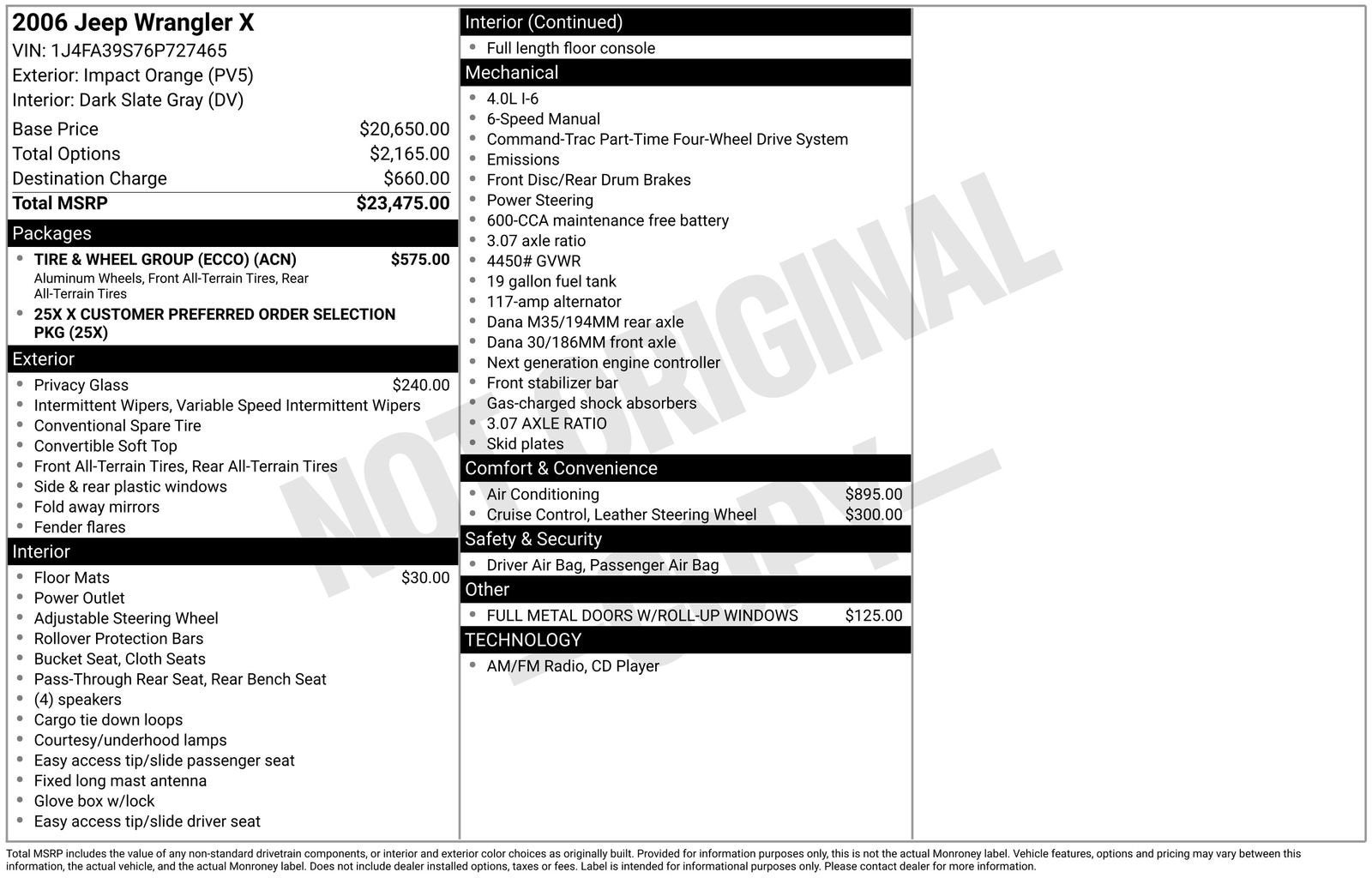 2006 Jeep Wrangler X Burnt Orange 4WD PowerTech 4.0L I6 6-Speed Manual