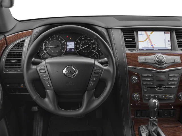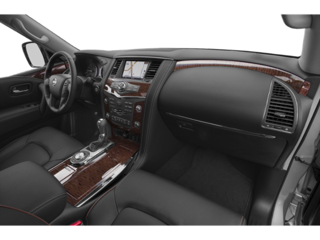 4WD, 13 Speakers, 2.937 Axle Ratio, 3rd row seats: split-bench, 4-Wheel Disc Brakes, ABS brakes, Air Conditioning, Alloy wheels, AM/FM radio: SiriusXM, Anti-whiplash front head restraints, Auto tilt-away steering wheel, Auto-dimming door mirrors, Auto-dimming Rear-View mirror, Auto-leveling suspension, Automatic temperature control, Brake assist, Bumpers: body-color, CD player, Delay-off headlights, Driver door bin, Driver vanity mirror, Dual front impact airbags, Dual front side impact airbags, Electronic Stability Control, Emergency communication system: NissanConnect Services, Four wheel independent suspension, Front anti-roll bar, Front Bucket Seats, Front Center Armrest, Front dual zone A/C, Front fog lights, Front reading lights, Fully automatic headlights, Garage door transmitter: HomeLink, Heated door mirrors, Heated Front Bucket Seats w/Driver Memory, Heated front seats, Illuminated entry, Leather Shift Knob, Leather-Appointed Seat Trim, Low tire pressure warning, Memory seat, Navigation System, Occupant sensing airbag, Outside temperature display, Overhead airbag, Overhead console, Panic alarm, Passenger door bin, Passenger vanity mirror, Power door mirrors, Power driver seat, Power Liftgate, Power passenger seat, Power steering, Power windows, Radio data system, Radio: Bose AM/FM/SXM/CD/MP3/HD Radio, Rain sensing wipers, Rear air conditioning, Rear anti-roll bar, Rear reading lights, Rear seat center armrest, Rear window defroster, Rear window wiper, Reclining 3rd row seat, Remote keyless entry, Roof rack: rails only, Security system, Speed control, Speed-sensing steering, Speed-Sensitive Wipers, Split folding rear seat, Spoiler, Steering wheel memory, Steering wheel mounted audio controls, Tachometer, Telescoping steering wheel, Tilt steering wheel, Traction control, Trip computer, Turn signal indicator mirrors, Variably intermittent wipers, Voltmeter, Wheels: 20 Machined Finish Painted Alloy, 4WD.