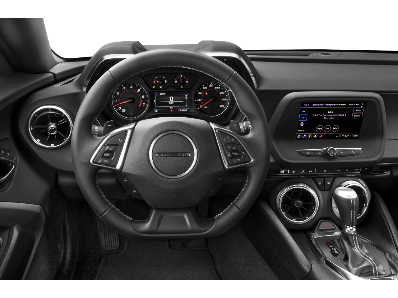 - Head-Up Display with color digital readouts for vehicle speed, selected gear, G-Force, audio system information, high-beam indicator, compass, outside air temperature, tachometer, vehicle messages, Turn-by-Turn information and phone information